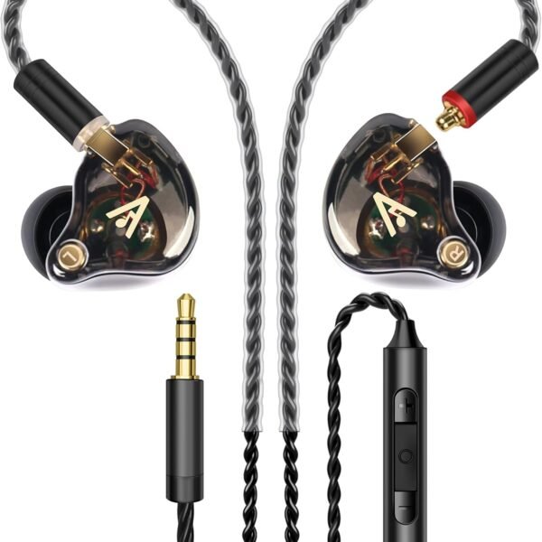 Vibes 202M Wired Earbuds – HiFi in Ear Monitor Headphones – Noise Isolating Ear Buds w/ Mic – Clear Sound, Deep Bass & Comfort-Fit Gaming Earphones – MMCX to 3.5mm & Silver Plated Cord, Carrying Case