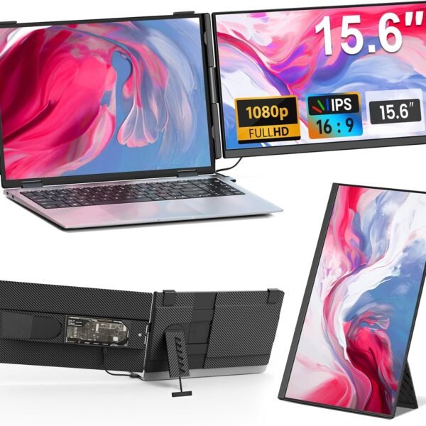 Laptop Screen Extender – 15.6″ FHD 1080P Portable Monitor for Laptop, Detachable & Plug and Play Dual Monitor Extender for 13″-17.3″ Laptops, Compatible with Wins/Mac/Android/Chrome