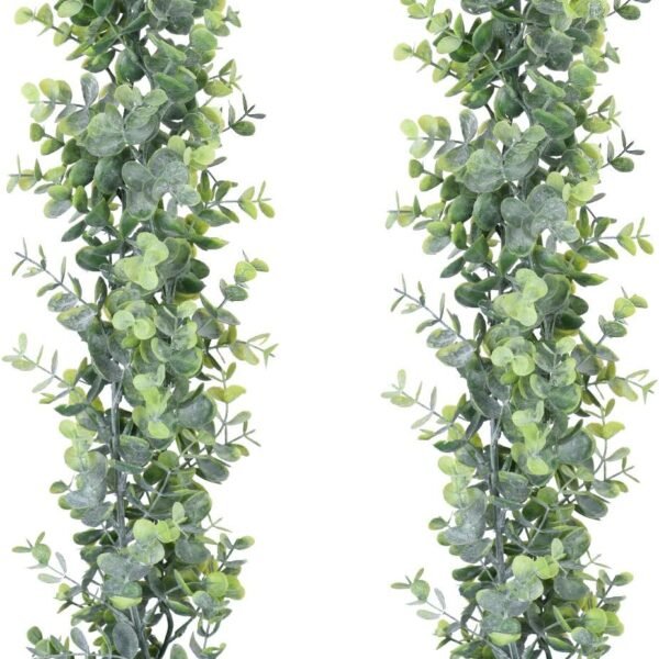 DearHouse Faux Eucalyptus Garland Plant, 2 Pack Artificial Vines Hanging Eucalyptus Leaves Greenery Garland for Wedding Backdrop Arch Wall Decor, 6 Feet/pcs UV Protected Indoor Outdoor