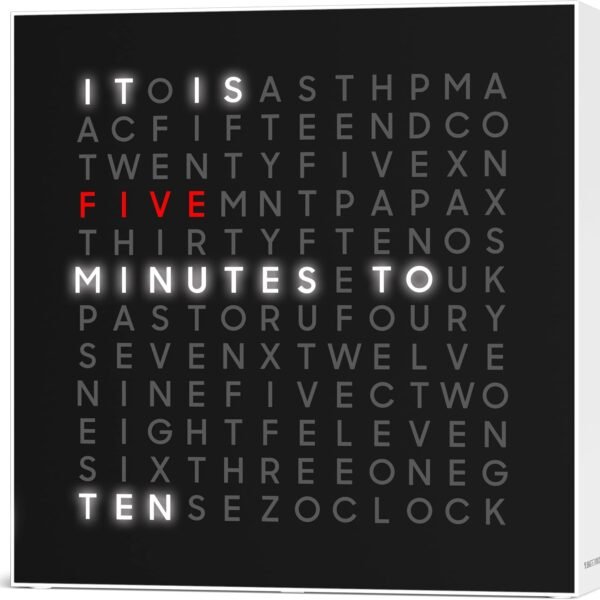 Sharper Image® LED Word Clock Pro with Dimmable Light, 9.45″ Modern Design, & Red 5-Minute Alerts| Electronic Accent Wall & Desk Clock| Contemporary Home & Office Decor| Housewarming Gift