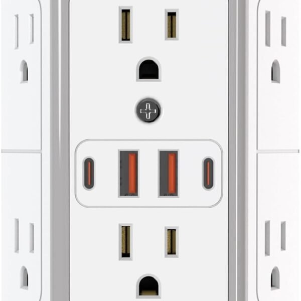 JcBlaon Outlet Extender Surge Protector – 6 Outlet Splitter with 4 USB Ports (2 USB C), Multiple Plug Expander Wall Charger, 3 Sided Multi Plug Wall Adapter Power Strip for Home Office Kitchen Travel