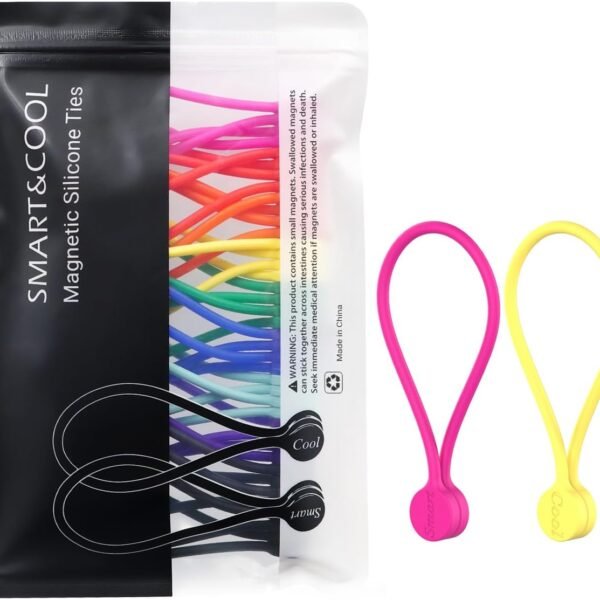 SMART&COOL Reusable Silicone Magnetic Cable Ties for Bundling and Organizing, Holding Stuff, Book Markers, Fridge Magnets, Assorted Color, 7.16” (20-Pack, Multi)