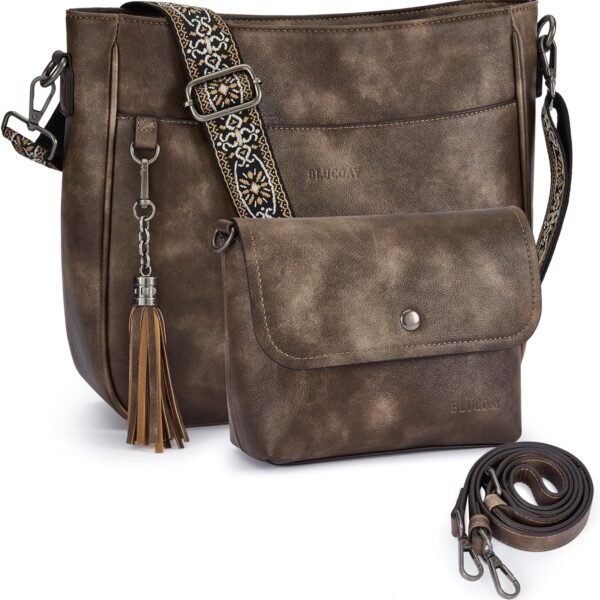 2PCS/Set Crossbody Bags Purses for Women,Vegan Leather Hobo Bags Wallet Set,Shoulder Handbags With 2 Adjustable Strap