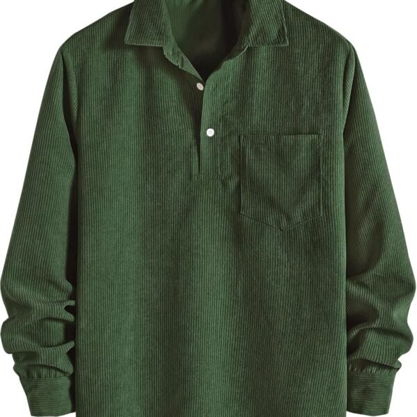 ZAFUL Corduroy Shirt for Men Pullover Long Sleeve Polo Shirt Casual Work Collared Shirt with Pocket Half Button Up Top