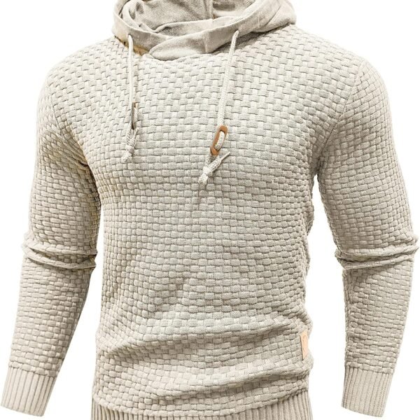 Zaitun Mens Hooded Sweatshirt Long Sleeve Solid Knitted Hoodie Pullover Sweater