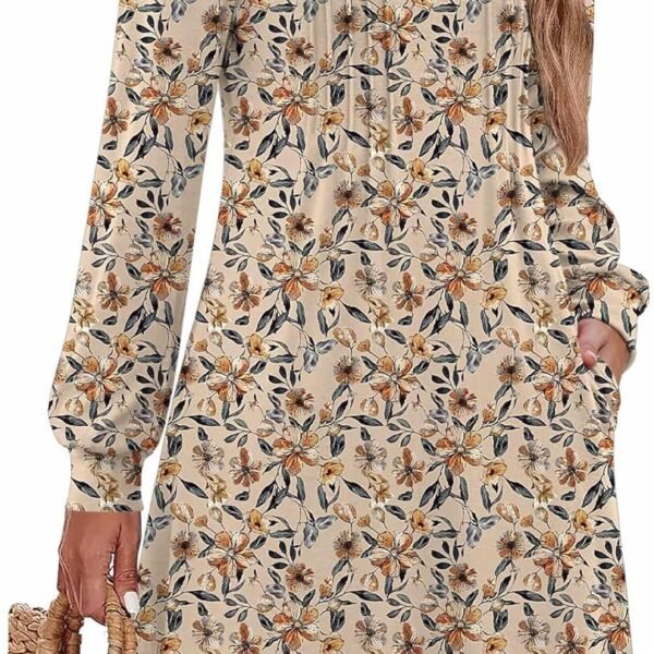 Zeagoo Fall Dresses for Women Long Sleeve Casual Pleated V Neck Dress 2025 A Line Tunic Dress