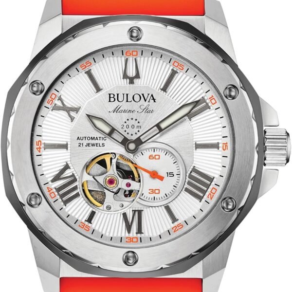 Bulova Men’s Marine Star ‘Series A’ Automatic Watch with Orange Silicone Strap Style: 98A226