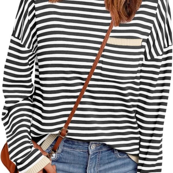 LILLUSORY Womens Striped Soft Knit Pullover Sweater Loose Fit Shirts with Chest Pocket