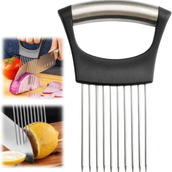 Onion Slicer, Stainless Steel Onion Holder for Slicing with Protective Case, Onion Cutter Tool for Meat Lemon Potato Tomato Avocado Egg Kitchen Slicing Assistant Tool (1 PCS)