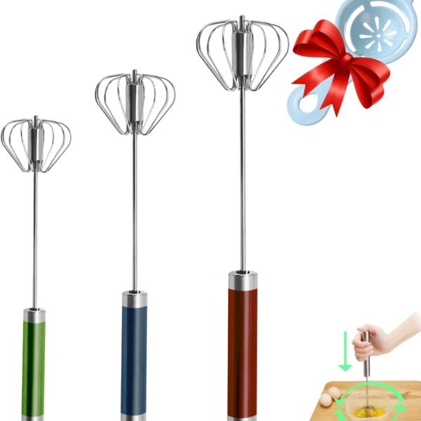 Semi-automatic Whisk, Stainless Steel Egg Beater, Hand Push Rotary Whisks Mixer Stirrer for Making Cream, Whisking, Beating and Stirring (3 Color)