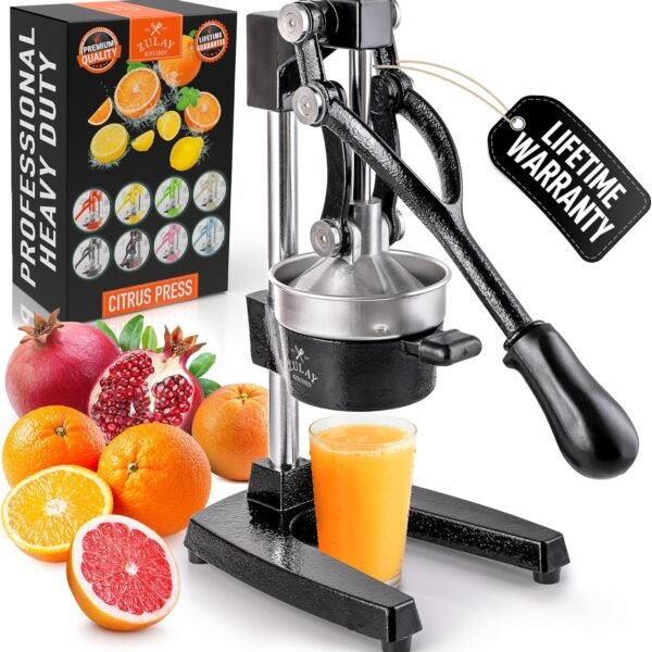 Zulay Kitchen Cast Iron Juicer – Easy-to-Clean Heavy-Duty Manual Juicer, Professional Citrus Juicer – Stainless Steel Lemon Squeezer – Manual Citrus Press & Orange Squeezer – Orange Juicer (Black)