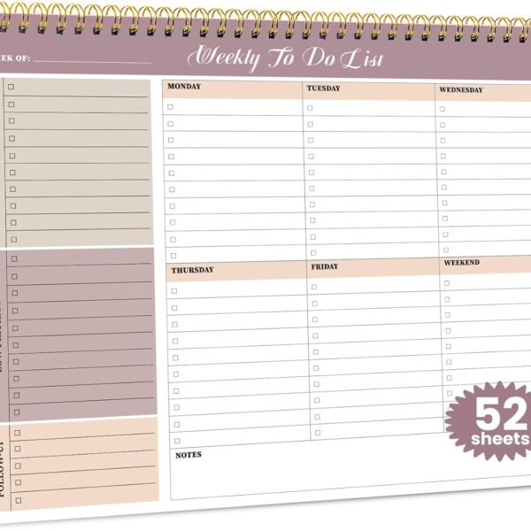 Weekly To Do List Notepad with 52 Undated Sheets(8.5″×11″)- Undated Weekly Planner Notepad for Office Desk Accessories and Supplies – Midnight Lilac