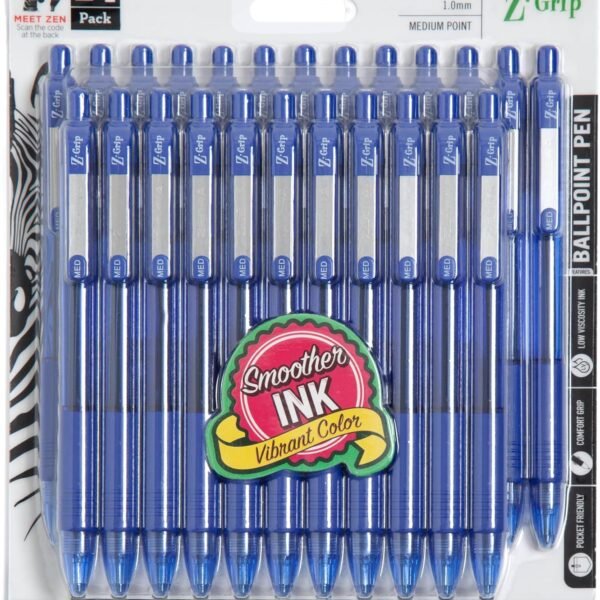Zebra Pen Z-Grip Retractable Ballpoint Pen, Smooth-Flowing Blue Ink, 1.0mm Medium Point, School & Office Supplies, Ideal for Note-Taking, Journal and Planner Use, 24-Pack (12225)