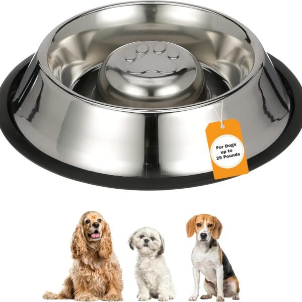 Neater Pet Brands Stainless Steel Slow Feed Bowl – Non-Tip & Non-Skid – Stops Dog Food Gulping, Bloat, Indigestion, and Rapid Eating (1.5 Cup)