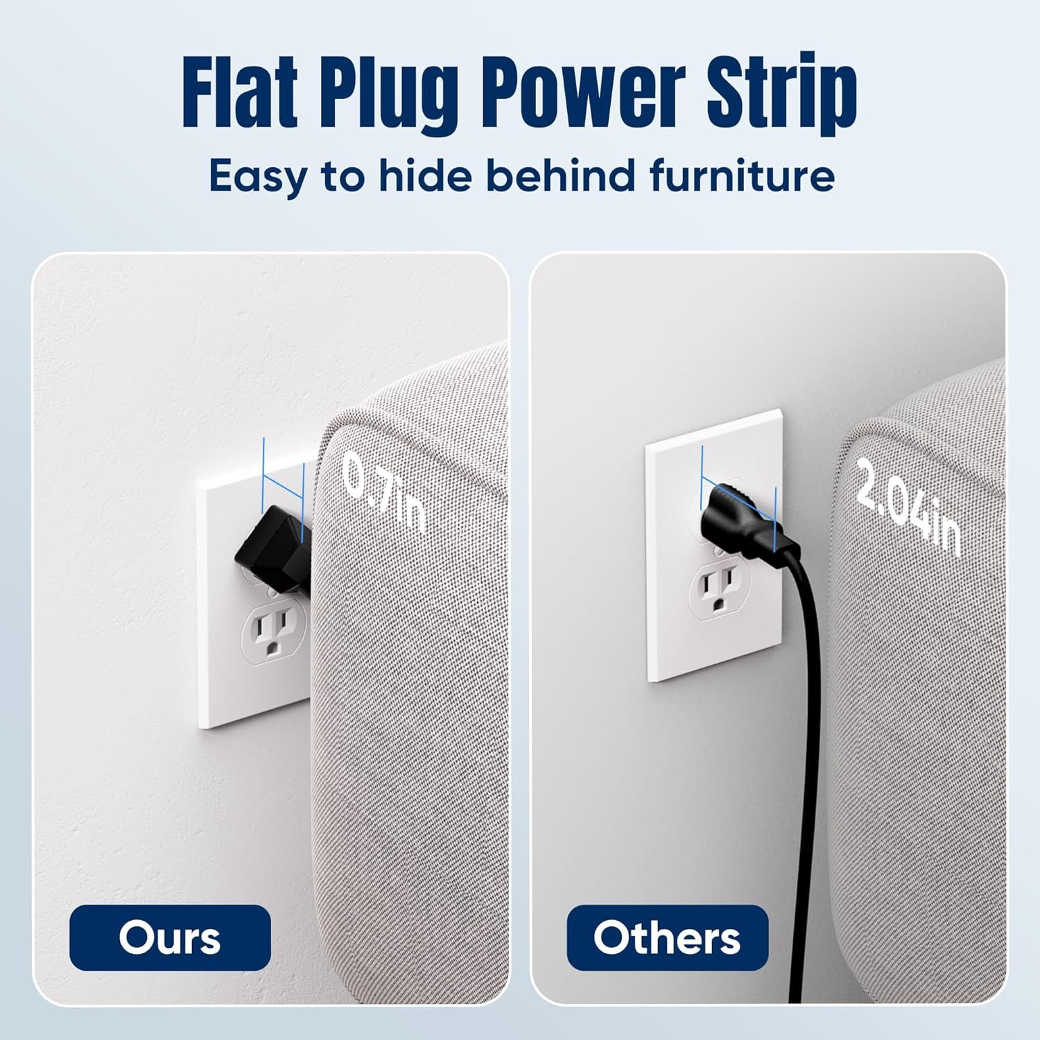 JouleLoom Power Strip Surge Protector with 6 FT Flat Plug Extension Cord