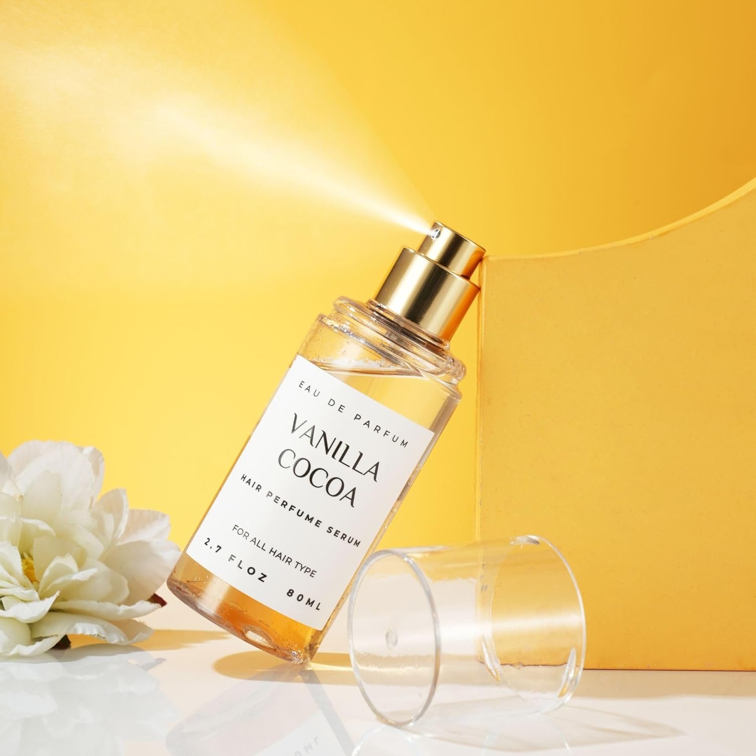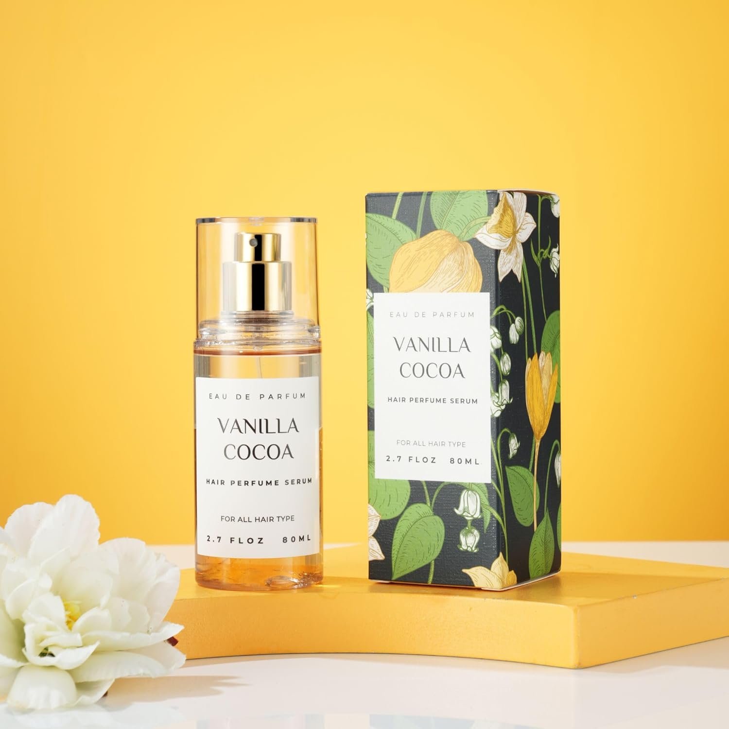 Creamy cocoa and smooth vanilla milkiness intertwine warmly, like melting silky chocolate and vanilla ice cream into hair—an intoxicatingly sweet embrace