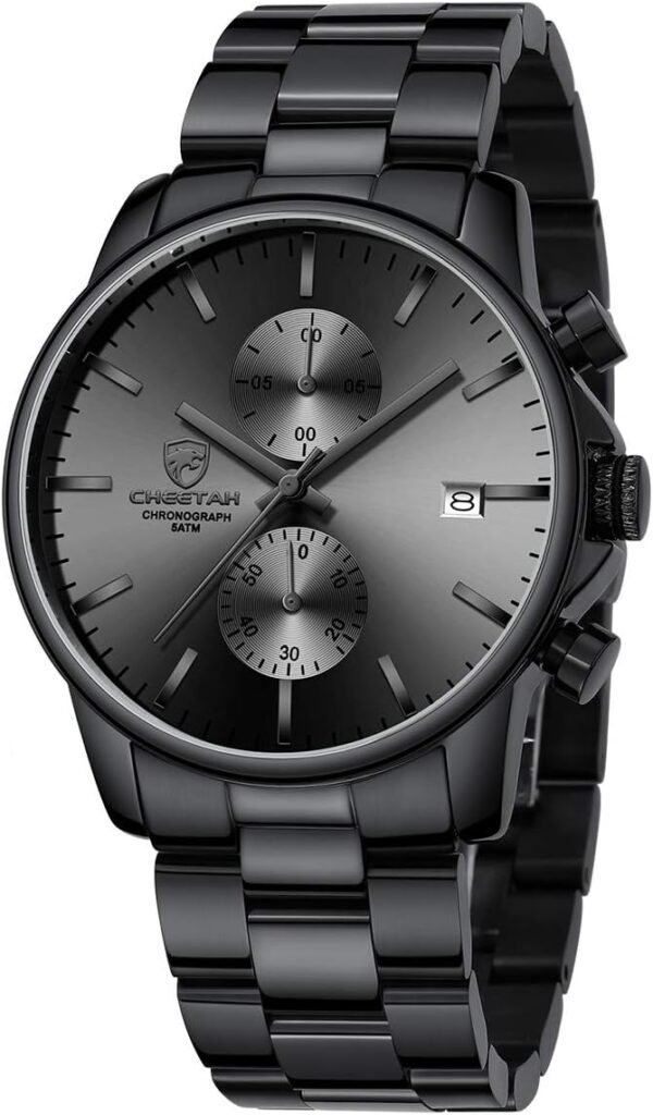 Bold in design and performance, this watch takes stylish precision to a new level. With sleek lines and the deep obsidian tones of the bezel, case, band and face offset by crisp white accents, it presents a sophisticated aesthetic that looks as smooth with jeans as it does a suit. Equipped with quartz mechanism, a meticulously designed chronograph precise to within a second per hour, WR100/10bar and solid 2 year battery life, it is confidently reliable when seconds matter.