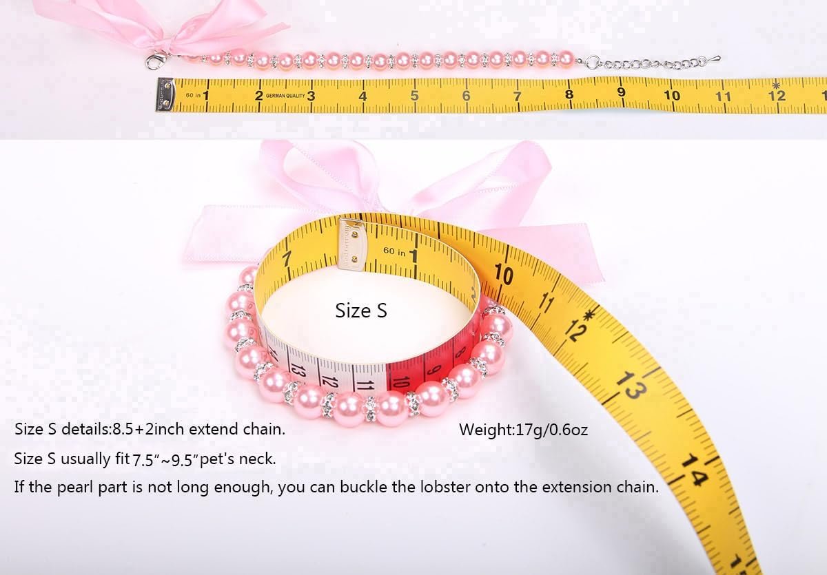 Dog Cat Pearls Necklace Collar with Bling Accessories and Ribbon Bow Pet Puppy Jewelry for Female Dogs Cats Small Medium (S, Pink)