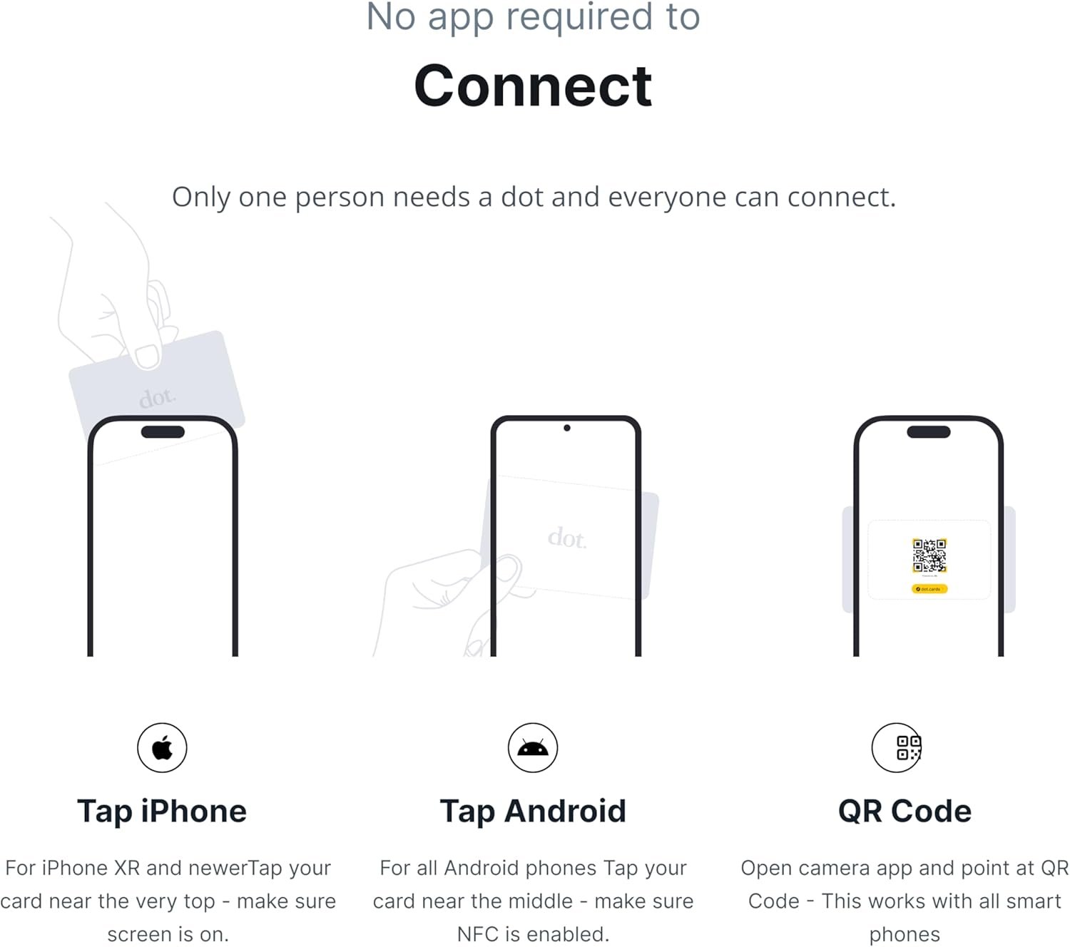 No app or device requirement: Share your dot.Profile with anyone, as others don’t need an app or a dot.device to receive your information.