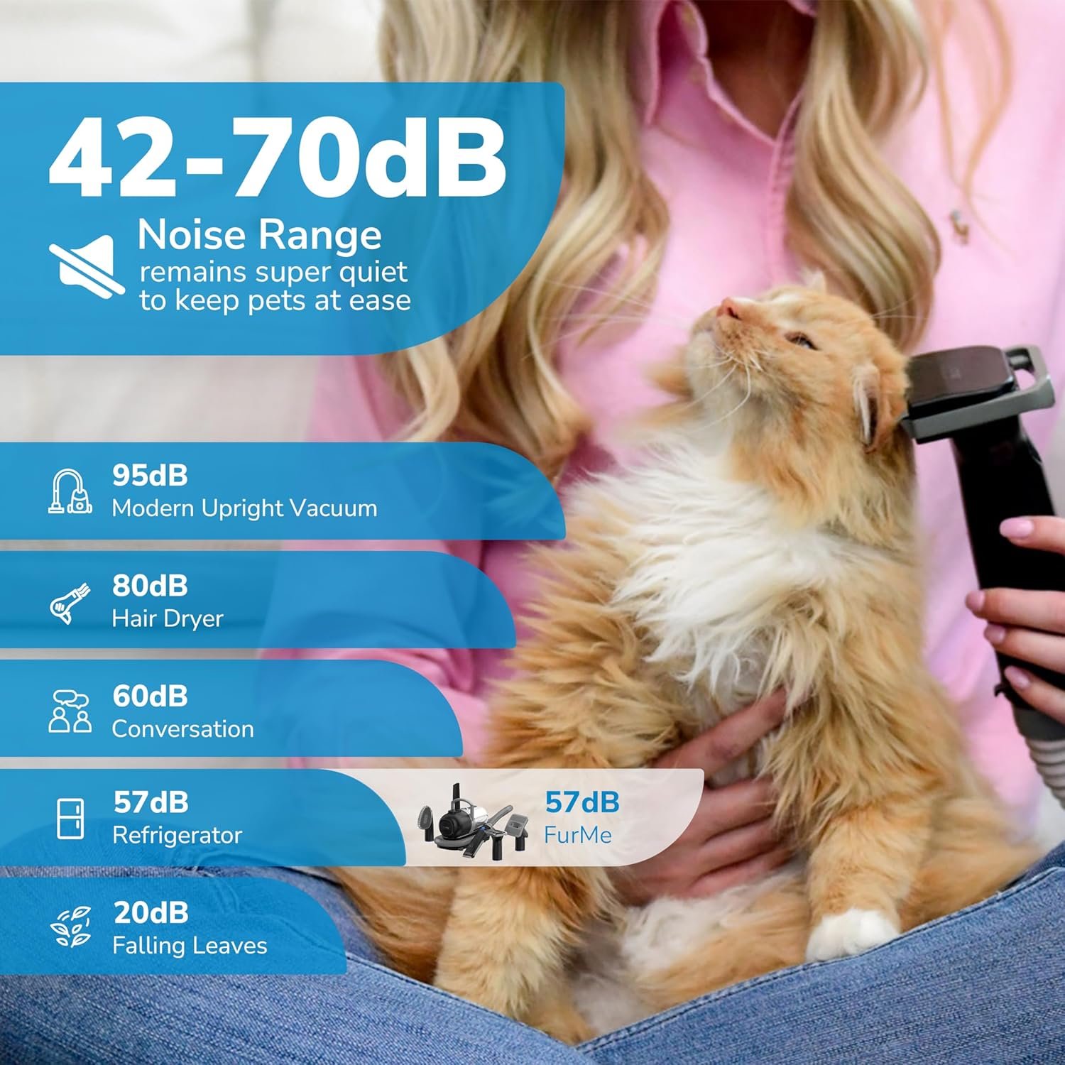 VERSATILE DESIGN: FurMe cat & dog grooming vacuum set adapts to all fur types. It’s the ideal grooming vacuum for both cats and dogs, ensuring a smooth experience for every coat and addressing shedding needs.