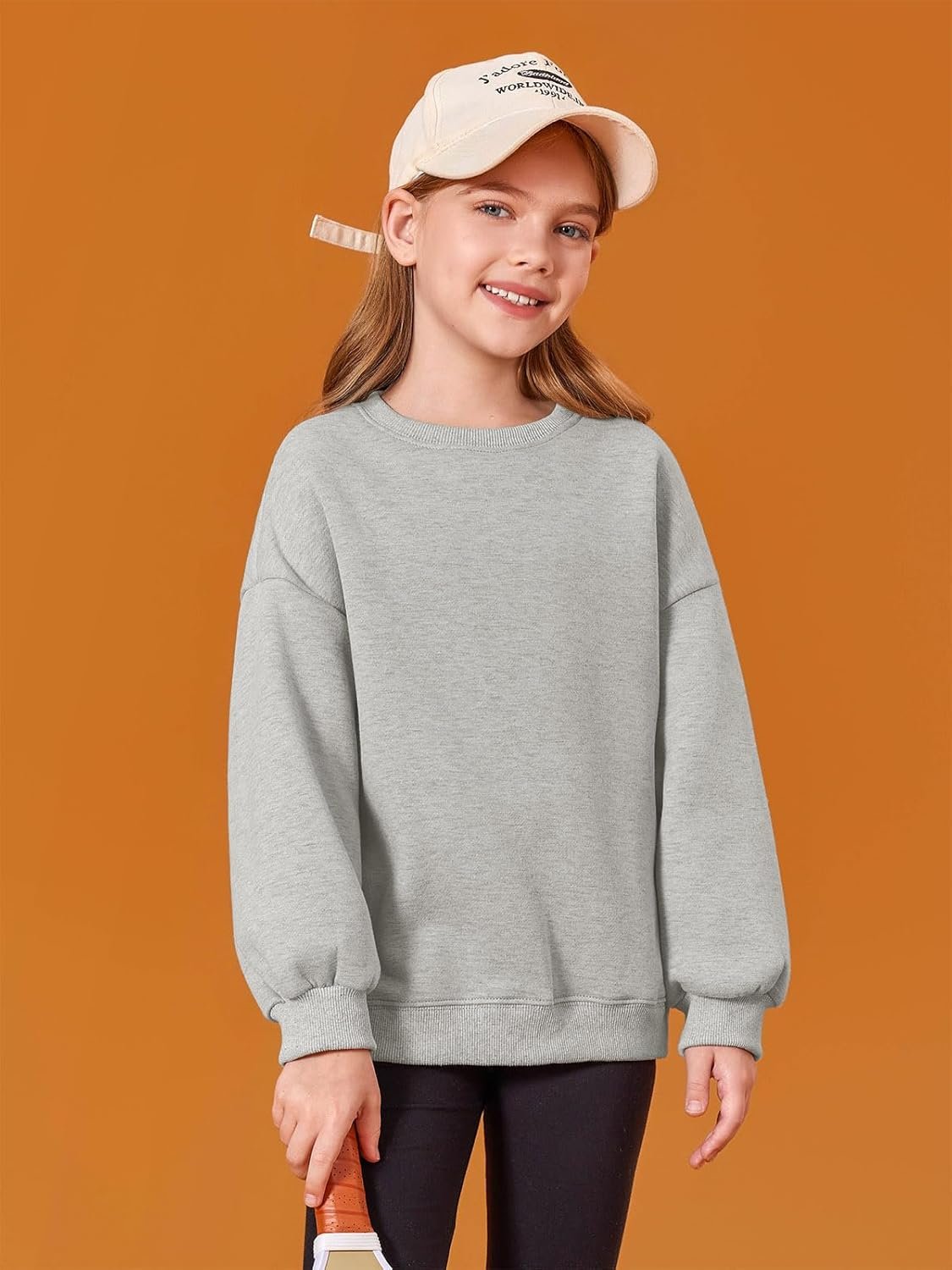 Haloumoning Girls Oversized Crewneck Sweatshirts Kids Fashion Fleece Drop Shoulder Pullover 5-14 Years