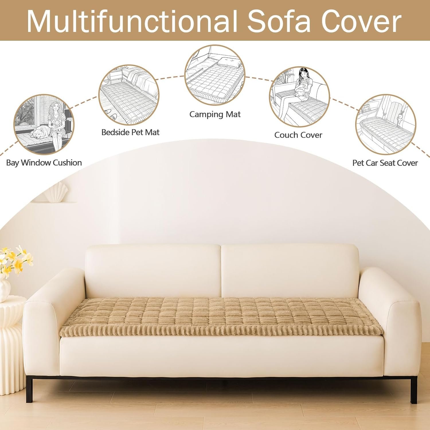 【Perfect Gift for Pet Family】An ideal gift for pet owners, this pet couch cover is both thoughtful and practical. It functions as a dog/cat couch cover, bay window cushion, bedside cushion and rug, or as a soft car seat mat and camping mat when outdoor picnic, offering versatile comfort for every season and every part of your home.
