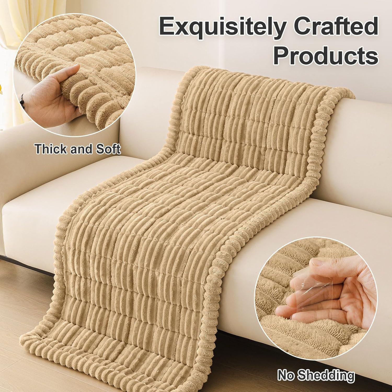 【Soft and Thick Fabric】Handmade from high-density facecloth fabric, this plush sofa cover is incredibly thick and soft. It’s highly shed-resistant, so you can get all the coziness of a fuzzy couch cover without worrying about your furniture and clothes always being covered with shed hairs.