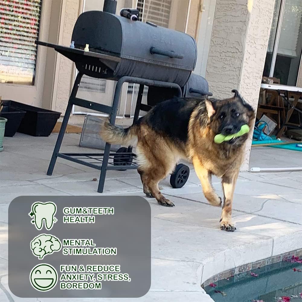 This 18 pcs set will enrich your dogs’ life, and provides a lot entertainment. The toys range from 4 inch to 6.5 inch. It is suitable for small breeds. But my 100lbs German Shepherd puppy is also obsessed with this set, finding the squeaker, making it squeak, hiding toys on the couch, and digging them back out. The toys are made with high quality material that is lead-free and many other bad stuff free. Satisfying chewing and hunting instinct. Keep your dog busy and happy is all we want!