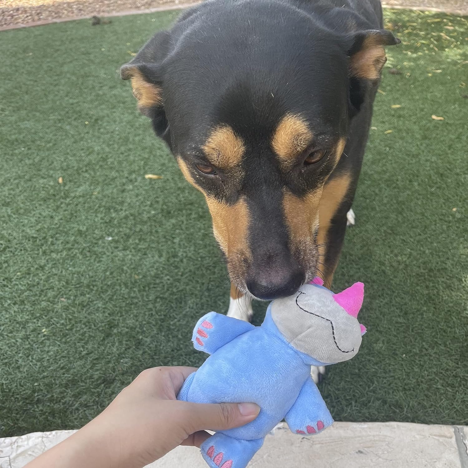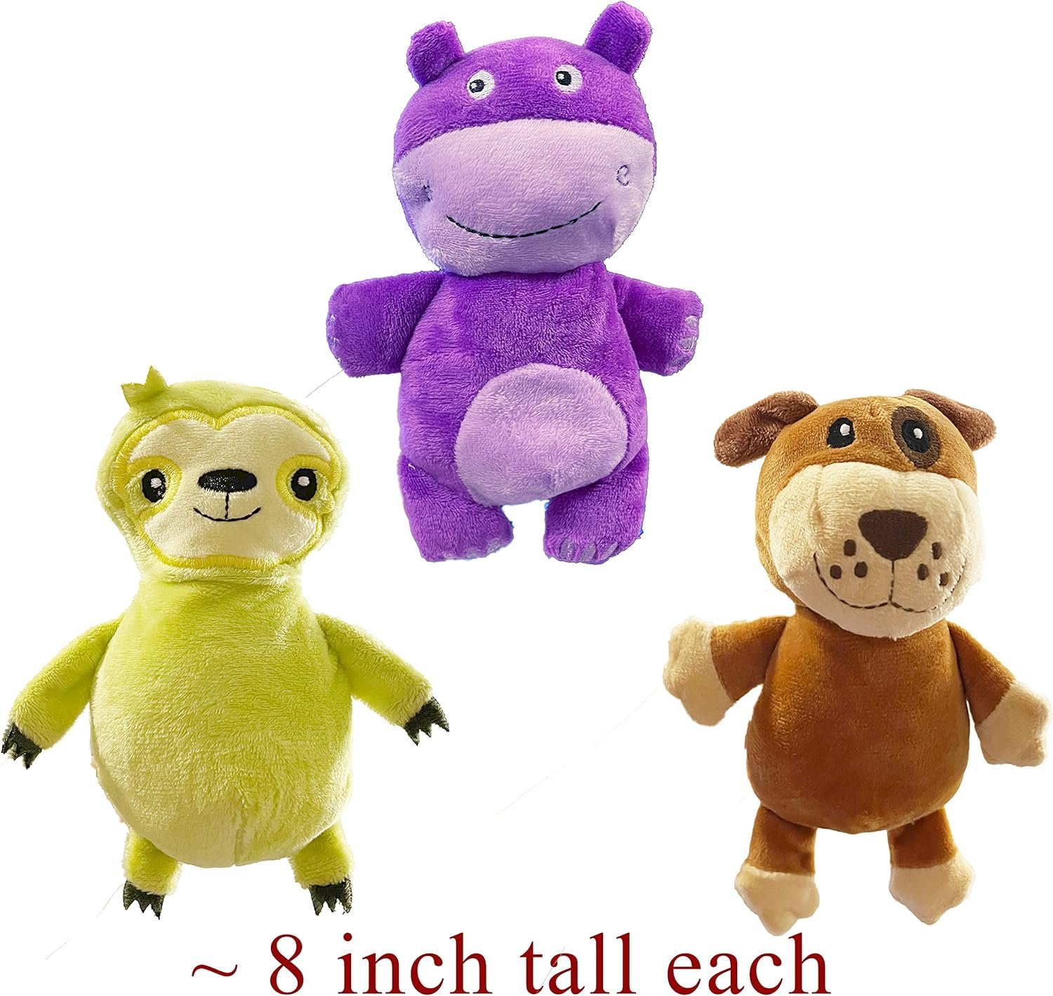 SUPER VALUE &GREAT FUN: Includes 6 Most Popular Dog Squeaky Toys for Small, Medium and Large Breeds.Six squeaky toys: rhino, dog, sloth, cow, duck, and hippo.Each toy measures 8 inch tall.Soft Plush Creates Chewing Satisfactions For Their Natural Instinct.A durable liner is added to the toy for longer play time and durability. We also reinforce all seams to make the toys tougher. Provide hours of fun.Not for aggressive chewers. Like every other toy, the squeaky toys are not indestructible. We recommend supervised play, and timely replacement of the broken ones.