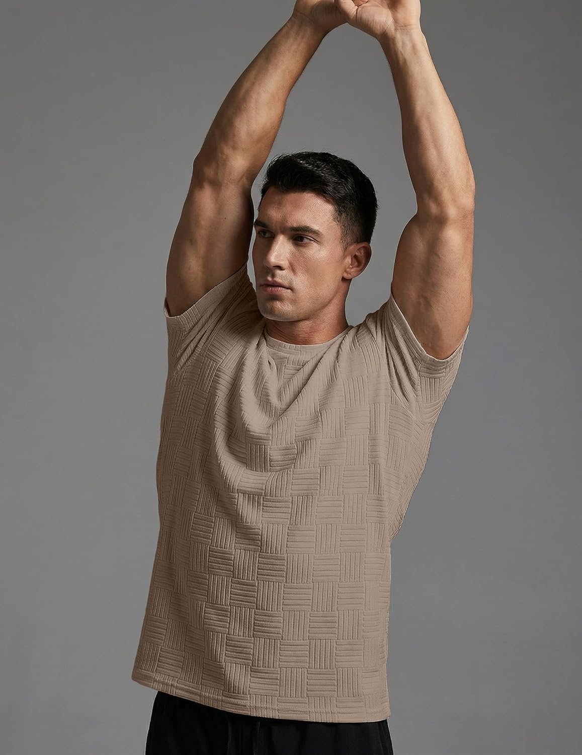 JMIERR Mens T-Shirt Casual Stretch Solid Crewneck Short Sleeve Tees Textured Shirts