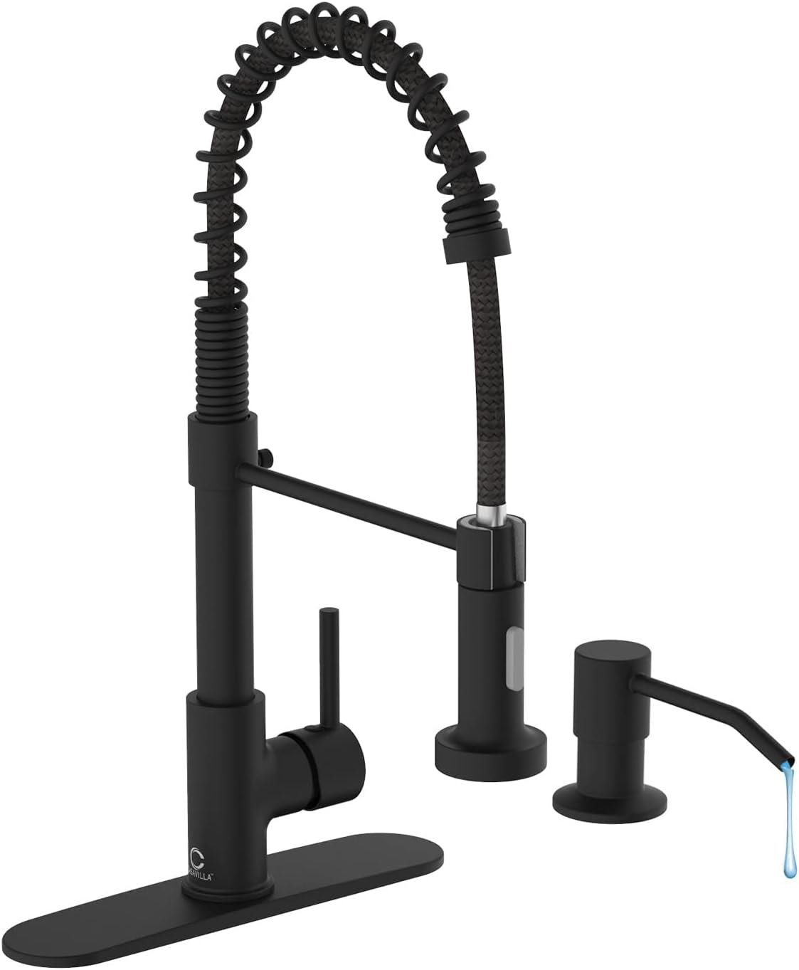 【EASY MAINTENANCE】Lead-free solid brass body and commercial SUS 304 stainless steel spring construction forged products. Matte Black surface treatment added 18/8 Chromium/Nickel content provides a superior anti-corrosion and anti-rust finish that prevents dirt such as fingerprints or water stains from adhering to the faucet surface, making the kitchen look cleaner. Daily cleaning with a cloth or water is enough, less time cleaning and more time having fun with your family.