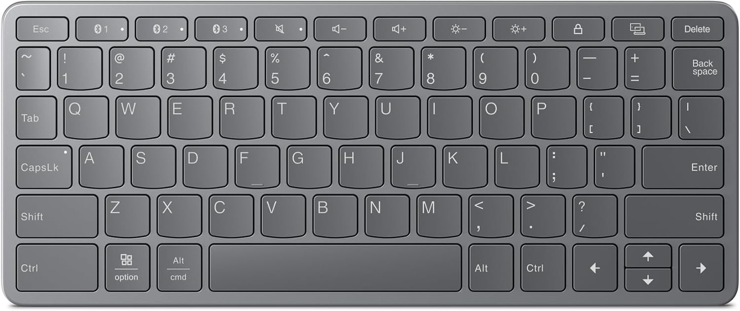 Lenovo Multi-Device Wireless Bluetooth Keyboard, Connect Up to 3 Devices Simultaneously, Compatible with iOS, Android, Windows, Slim Profile, Rechargeable, 60-Hour Battery Life, Iron Grey
