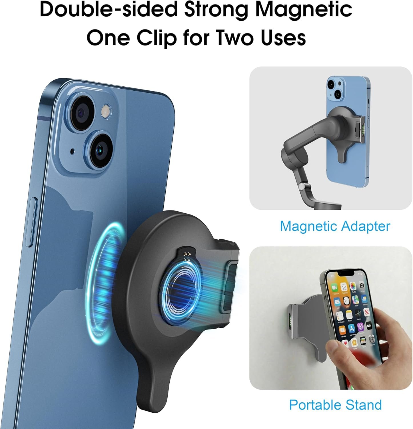 Lightweight & Dual-Sided Magnetic Versatility: Engineered with a lightweight build, this single Magnetic Quick-Release Mount only weighs 41g—adds zero extra bulk to your gimbal for DJI Osmo Mobile 7/7P/8, perfect for on-the-go outdoor shooting and easy portability. Its dual-sided magnetic design unlocks multi-use: remove it from the gimbal to use as a standalone magnetic holder, attaching your phone to fridges, metal desks & other iron surfaces for hands-free viewing/calling.