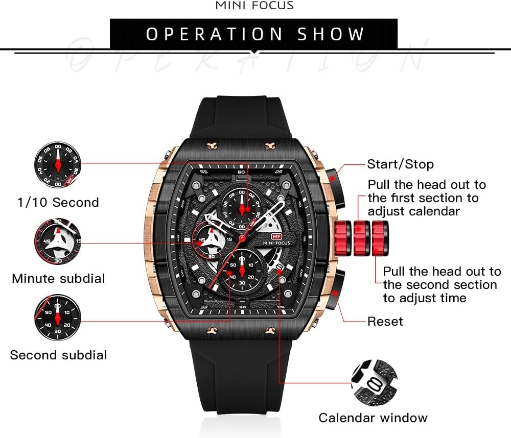Mini Focus Men’s Watch Fashion Sport Wrist Watches (Chronograph/Waterproof/Luminous/Calendar) Silicon Strap Quartz Watch for Men