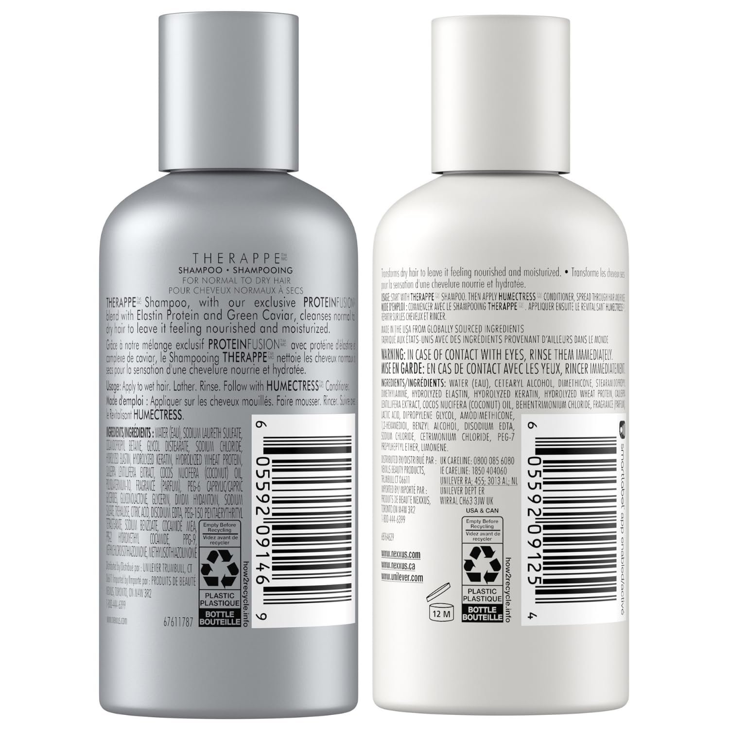 Nexxus Therappe Shampoo and Humectress Conditioner, Travel-Size – Ultimate Moisture for Dry Hair with Elastin Protein and Green Caviar, 3 Oz Ea