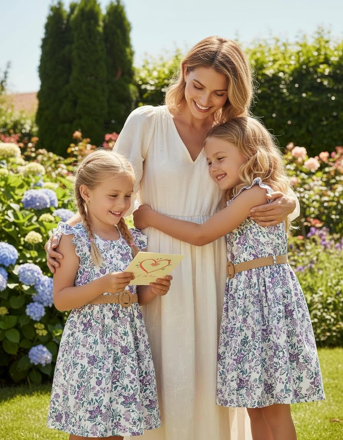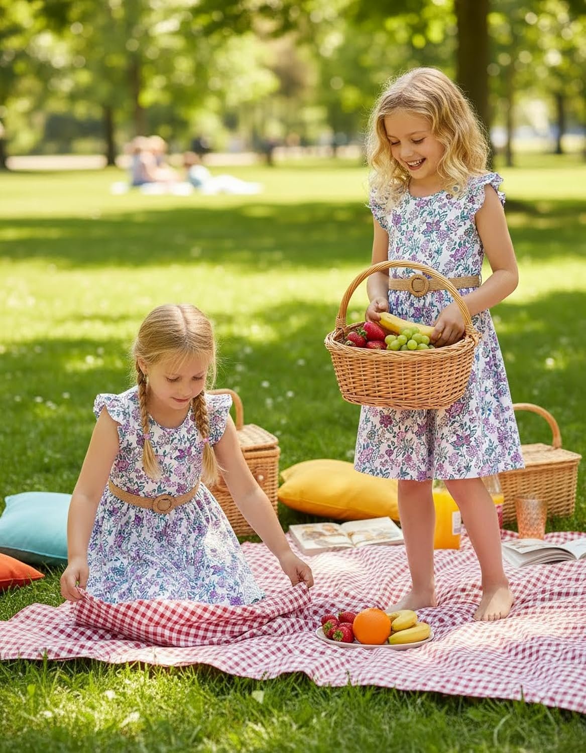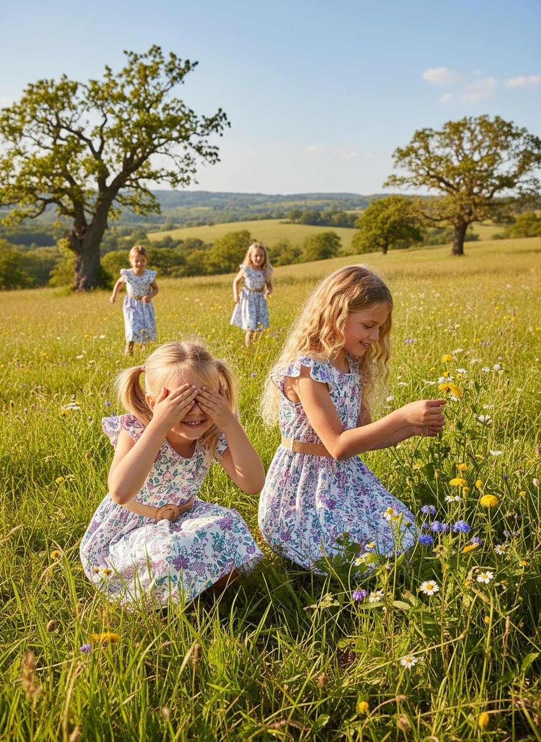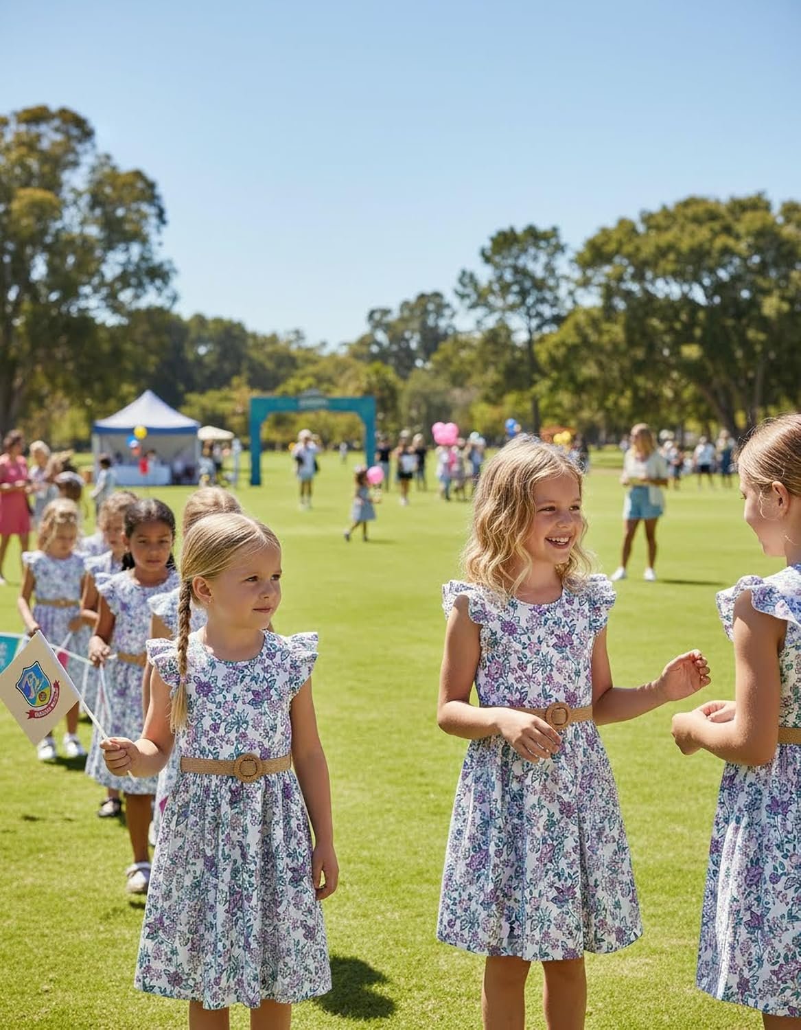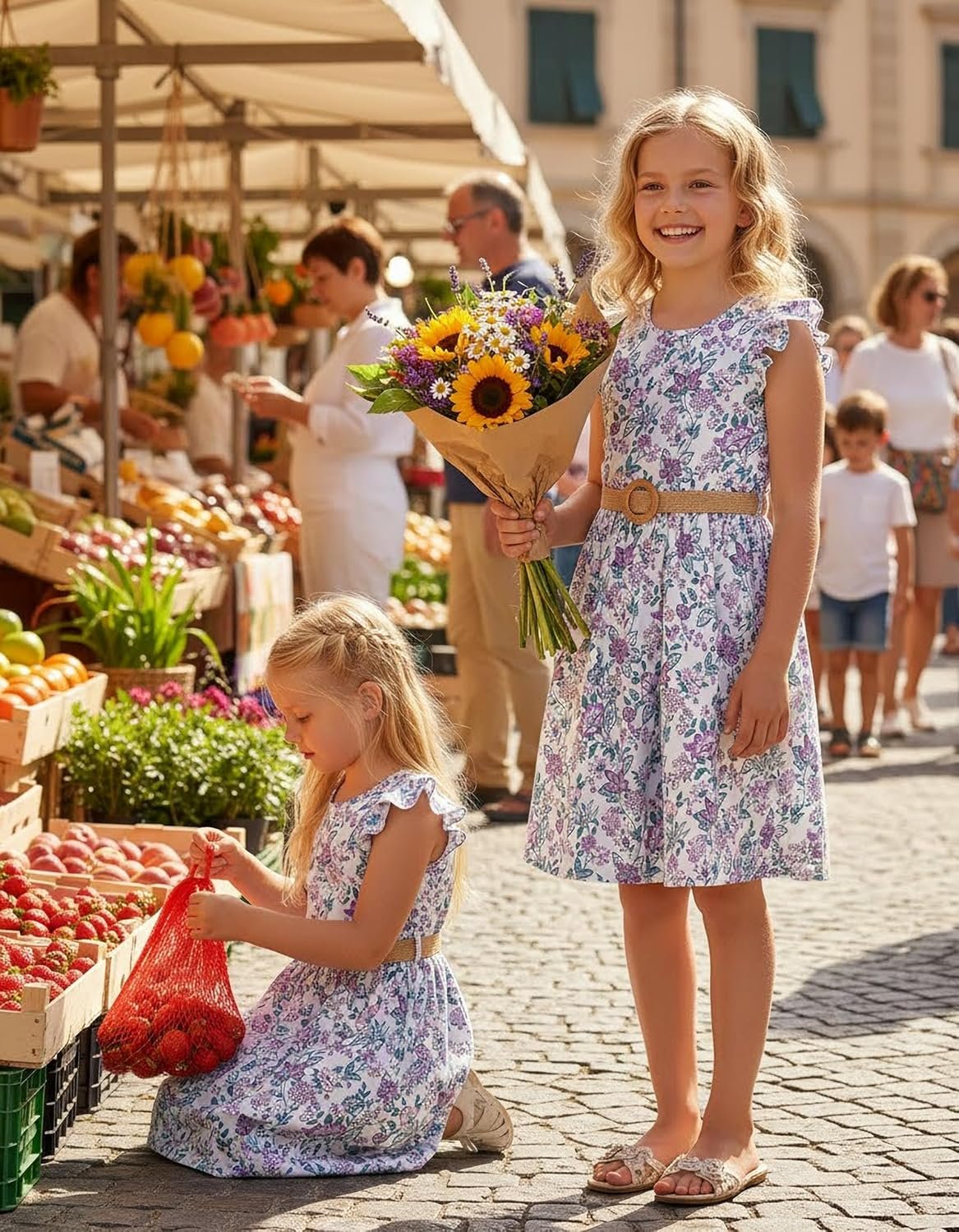 PATPAT Little Big Girls Dress Vintage Boho Floral Ruffle Short Sleeve Casual Swing Dress with Braided Belt