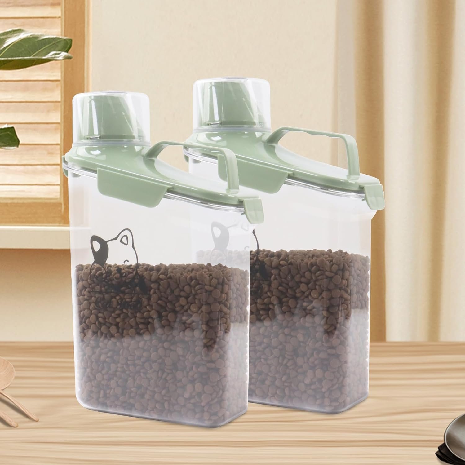 3.AIRTIGHT LOCKAGE:This tall plastic dry cat food container build in side-locking lids and silicone seal, ensuring spill-proof and keep the food fresh for a longer duration than expected.