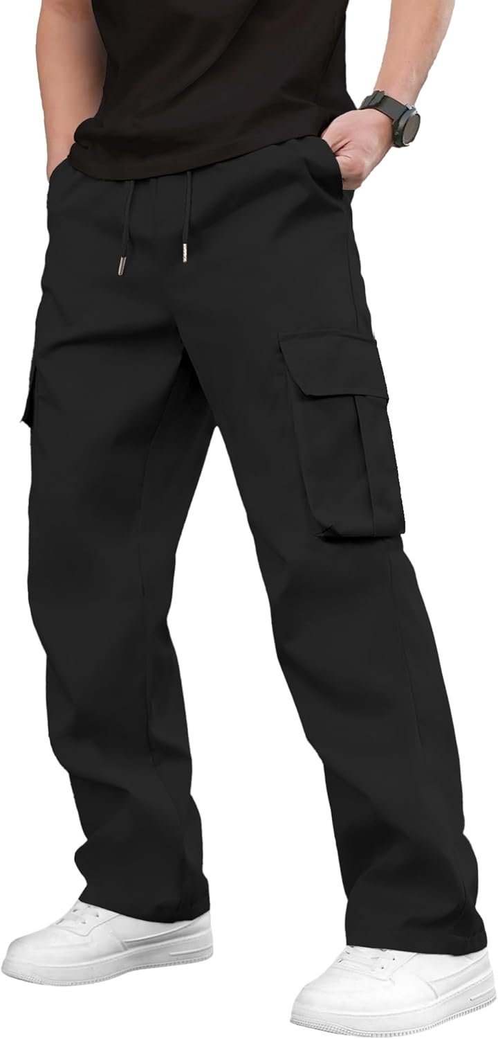 PLEPAN Men’s Casual Cargo Pants Drawstring Hiking Workout Tactical Joggers Sweatpants for Men with Pockets