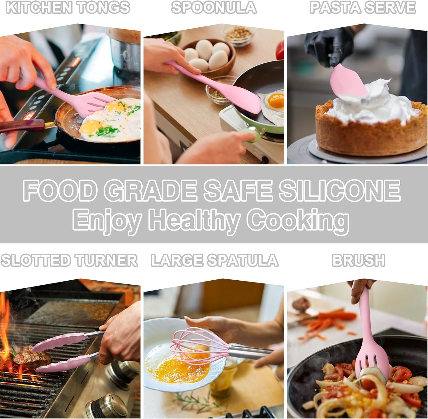 Umite Chef 22-Piece Silicone Cooking Utensils Set, Heat Resistant & Dishwasher Safe Kitchen Tools, Non-Scratch Spatula Set for Nonstick Cookware (Pink)