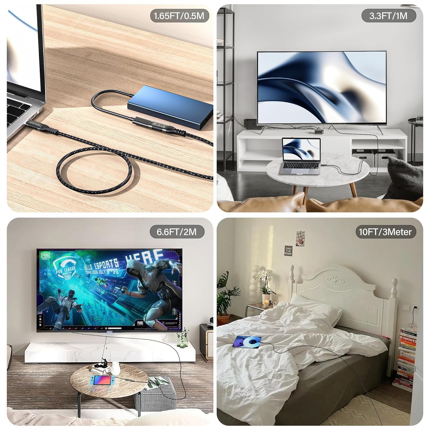 USB C Extension Cable: Solving Connection Challenges and Enhancing Convenience The 10ft/3M USB-C extension cable is a perfect solution. With this ideal length, it overcomes the issues of unchargeability and unusability resulting from short cables, and eliminates the clutter on the desktop caused by short USB C hubs. It brings enhanced convenience to your life.