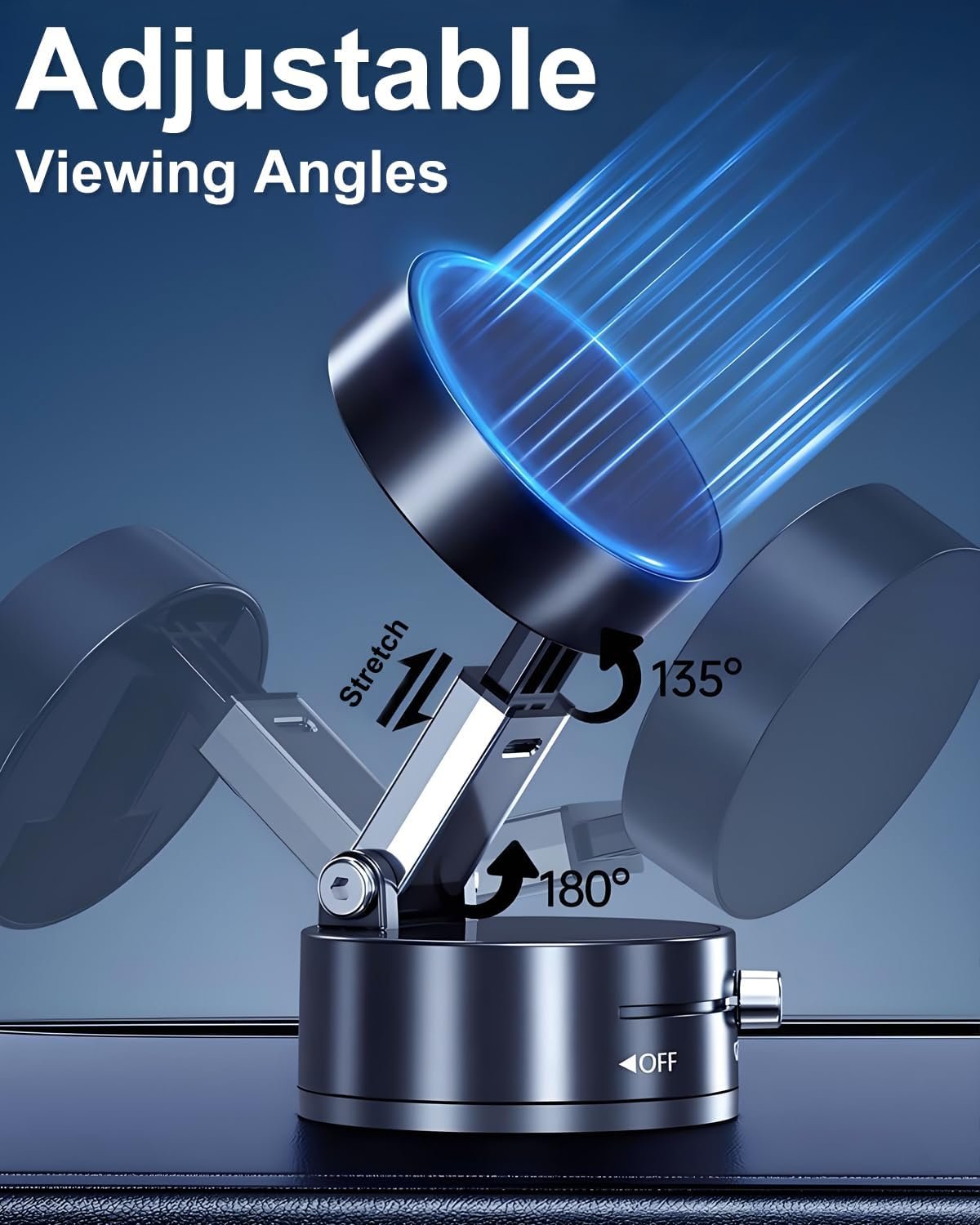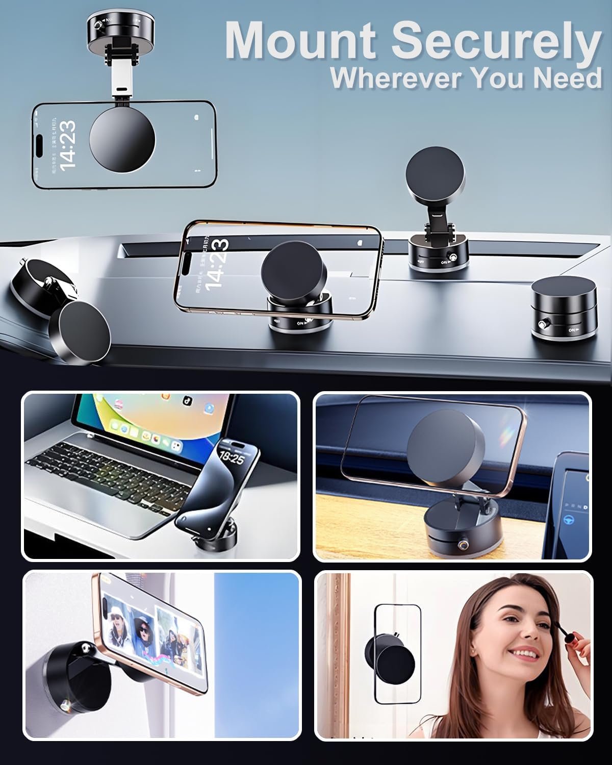 【Non-Adhesive Vacuum Suction Mount】This versatile mount features a non-adhesive vacuum suction cup that can securely attach to a variety of smooth surfaces without leaving any residue. Perfect for car windshields, dashboards, walls, or desktops, it offers a hassle-free way to position your device exactly where you need it.