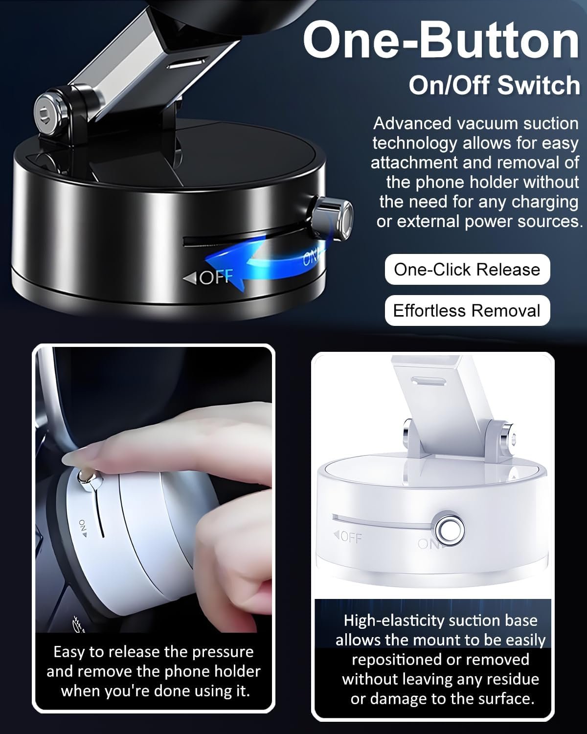 One-Button Design for Quick Use Vacuum Magnetic Phone Holder