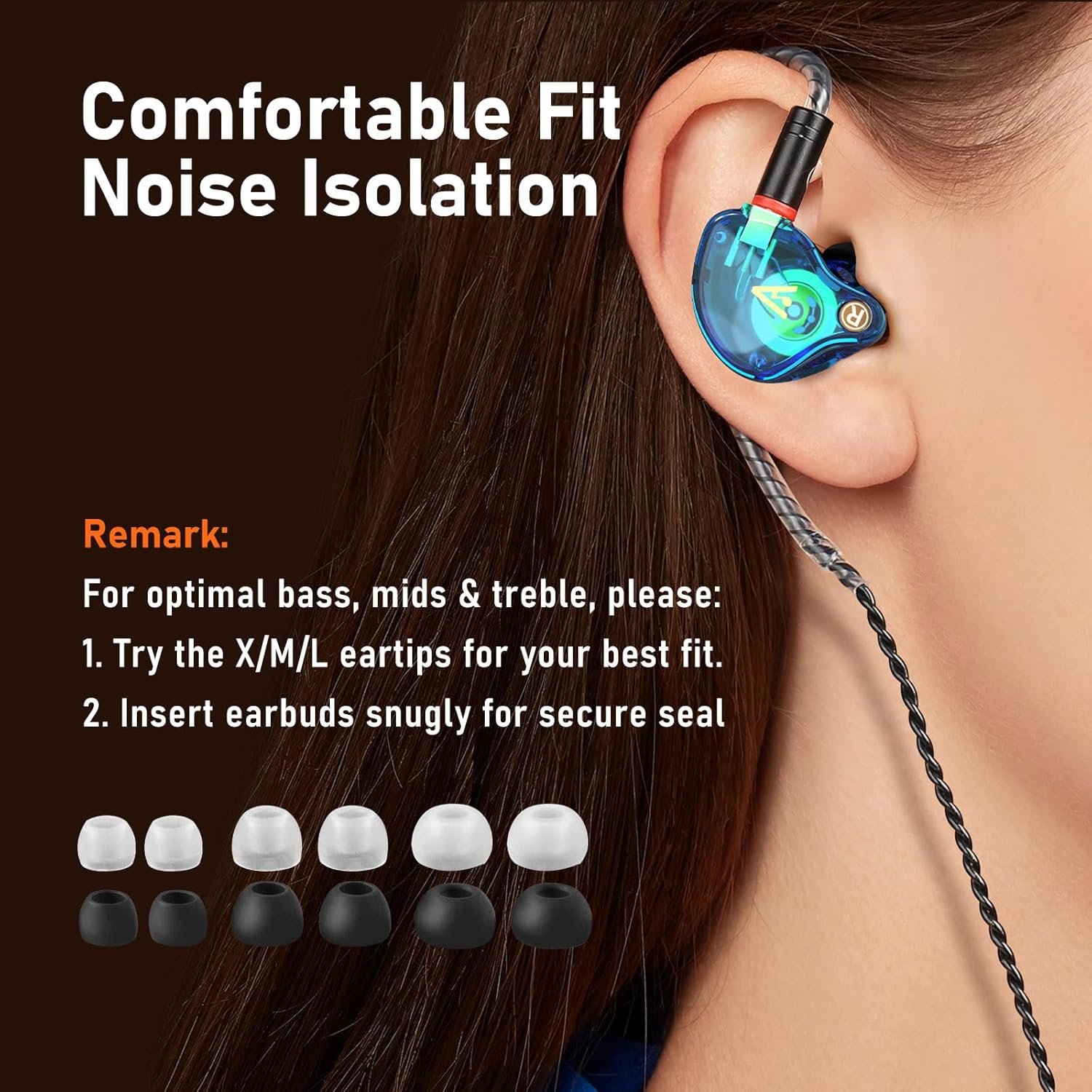 Experience the perfect blend of excellent sound, unmatched comfort, and striking design with Vibes 202M in-ear monitors. For optimal bass, mids & treble, please: 1) Try the X/M/L eartips for your best fit; 2) Insert the earbuds snugly for your secure seal.