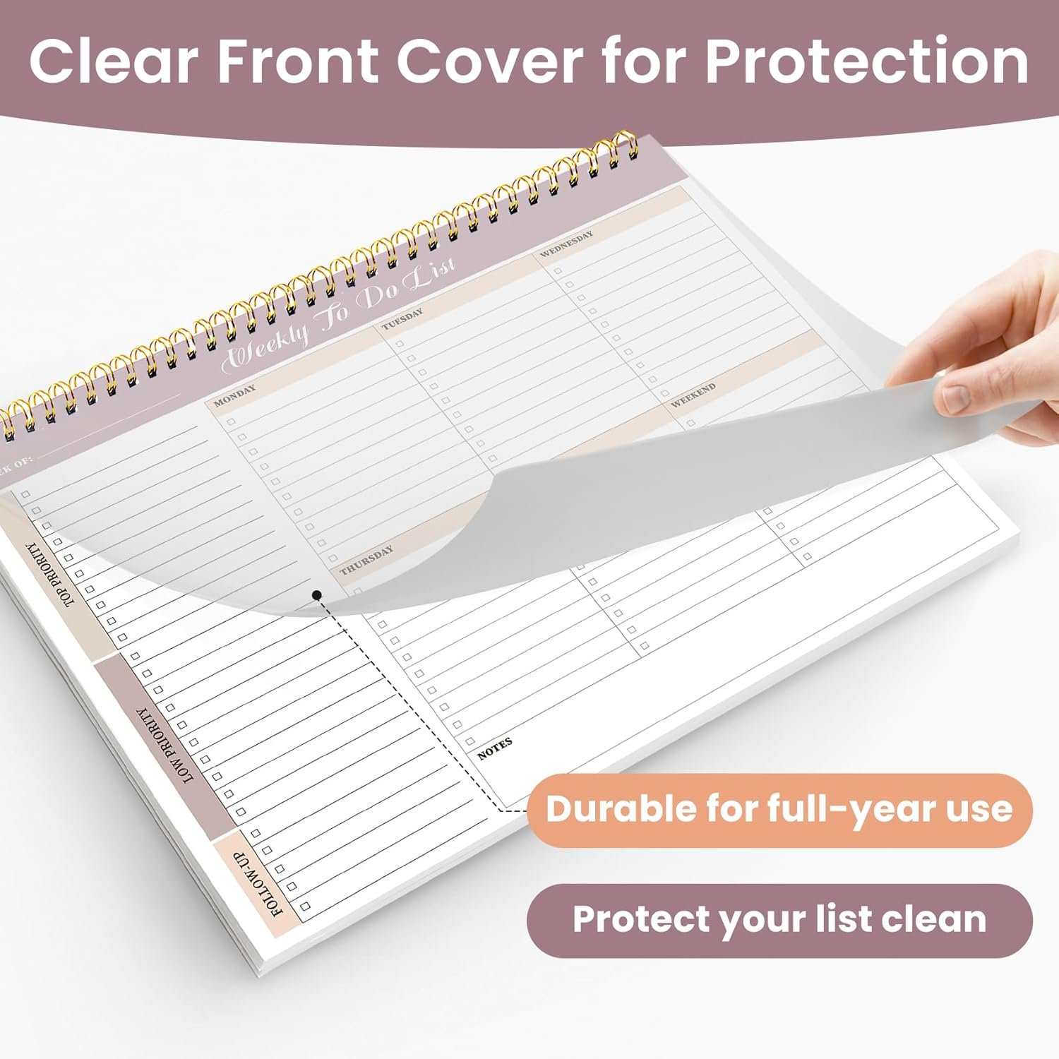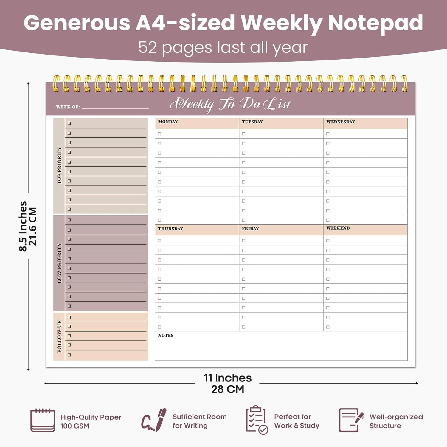 Functional Design: Crafted with premium quality covers, twin-wire binding, and a sturdy chipboard backing, our weekly planner desk pad provides flexibility for seamless page-turning and stability on any surface.
